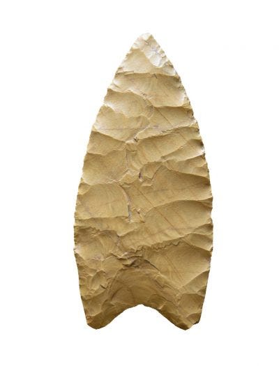 The Clovis point survived the ravages of time because it is stone. Much can be surmised from its design. A couple things are easily overlooked: the objective is penetration and maximum hemorrhaging of the targeted animal. These were subsistence hunters, stalkers who waited their opportunity, struck a well-placed blow and likely drove the terrified animal while continuing the attack and hastening its blood loss. You would want to bring the animal down as quickly as possible to ensure it doesn’t escape or travel far before dying.
